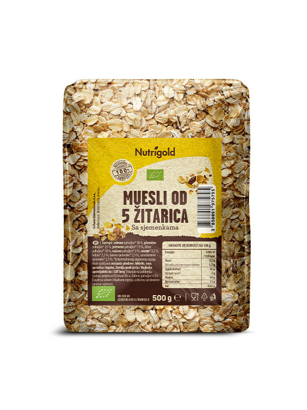 Nutrigold hat für Sie die perfekte Kombination aus 5 Getreidesorten mit Samen vorbereitet. Ausgewählt wurden Getreide mit abwechslungsreicher Nährstoffzusammensetzung und Samen mit hervorragenden nussigen Aromen, die zusammen eine bombastisch reichhaltige Kombination aus 100 % biologischem Anbau ergeben.