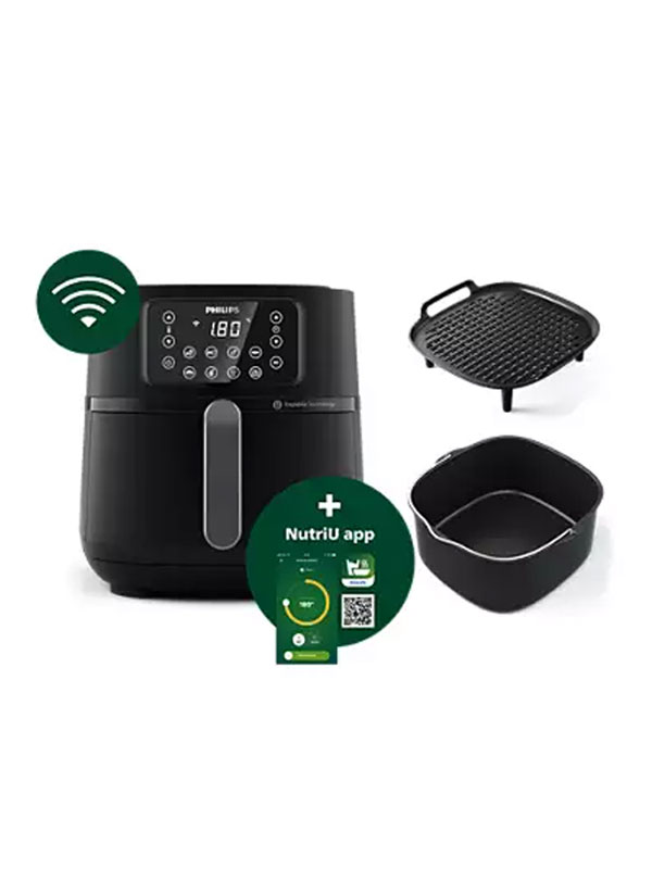 Mit dem Philips Airfryer Connected XXL Series 5000 ist die Zubereitung gesunder und leckerer Gerichte einfacher als je zuvor. Diese Heißluftfritteuse ist nicht nur Ihr kulinarischer Assistent, sondern dank der intuitiven NutriU App auch ein vernetzter Partner beim Kochen. Die App ermöglicht die Fernsteuerung und bietet Hunderte inspirierender Rezepte.