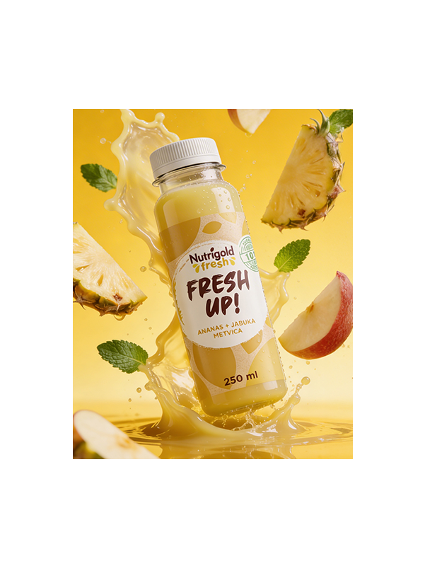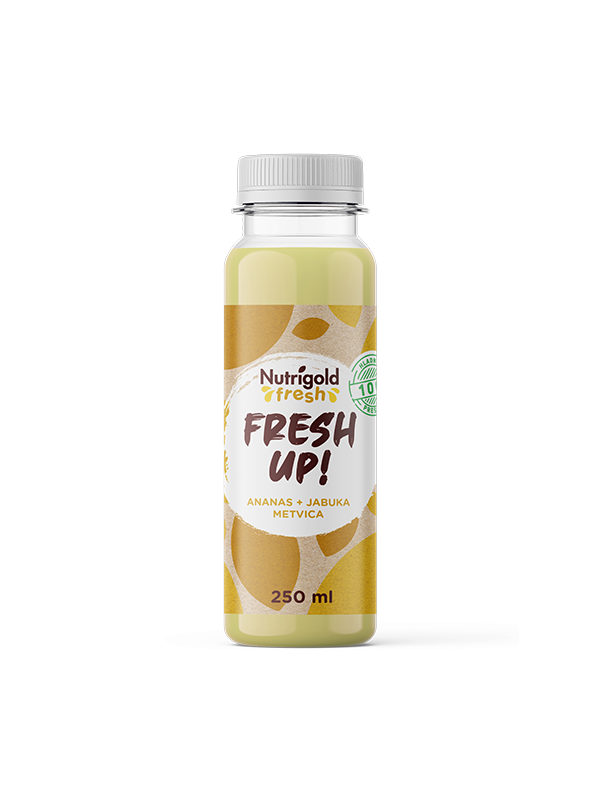 Kaltgepresster Ananassaft 68%, kaltgepresster Apfelsaft 30%, kaltgepresster Minzsaft 2%