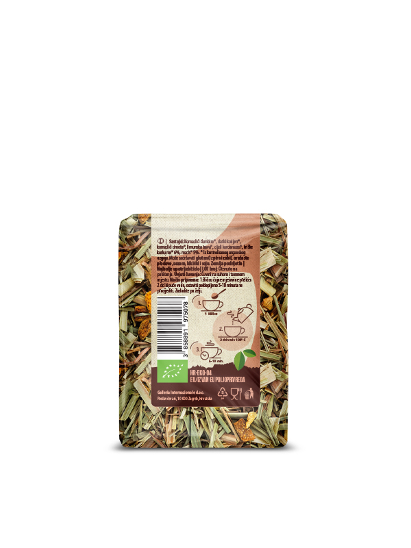 Ingwerstücke*, Süßwurzel*, Zimtstücke*, Zitronengras*, ganzer Kardamom*, Kurkumascheiben*, Muskatblüte*