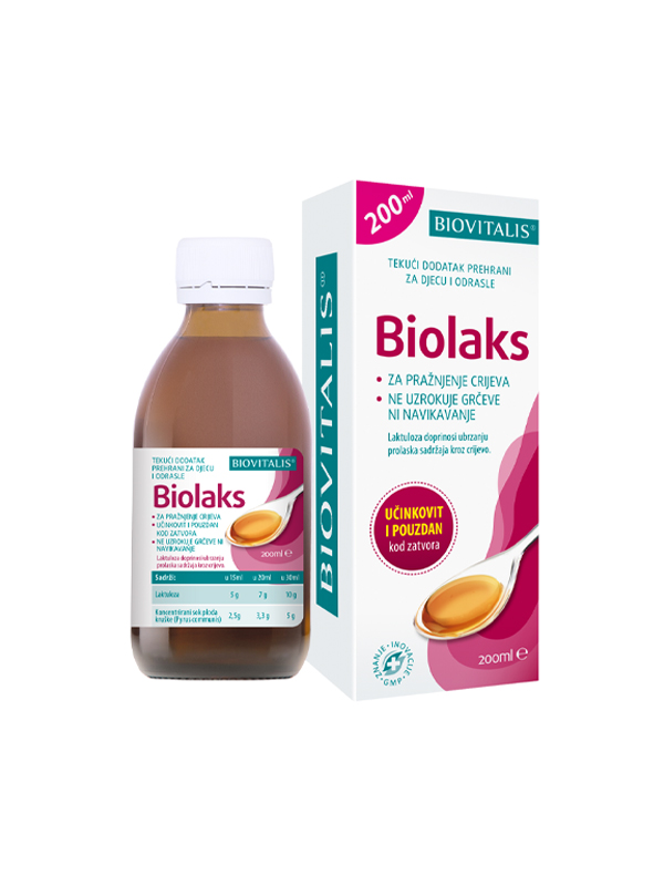 Das flüssige Nahrungsergänzungsmittel für den Stuhlgang von Biolaks mit seinem milden Birnengeschmack ist ein wirksamer und effizienter Kämpfer gegen schmerzhafte Verstopfung.
