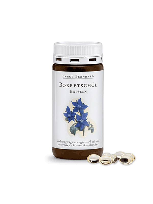 Jede Kapsel enthält 500mg reines Borretschöl mit etwa 22 % Gamma-Linolensäure (110 mg pro Kapsel)!