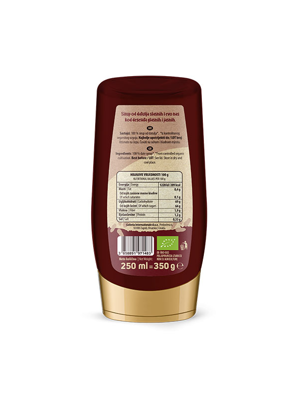 Nutrigold Bio-Dattelsirup enthält ausschließlich Bio-Datteln ohne Zusatzstoffe. Er ist sehr süß und sättigend und verleiht Ihren Speisen einen vollmundigen, leicht karamelligen Geschmack.