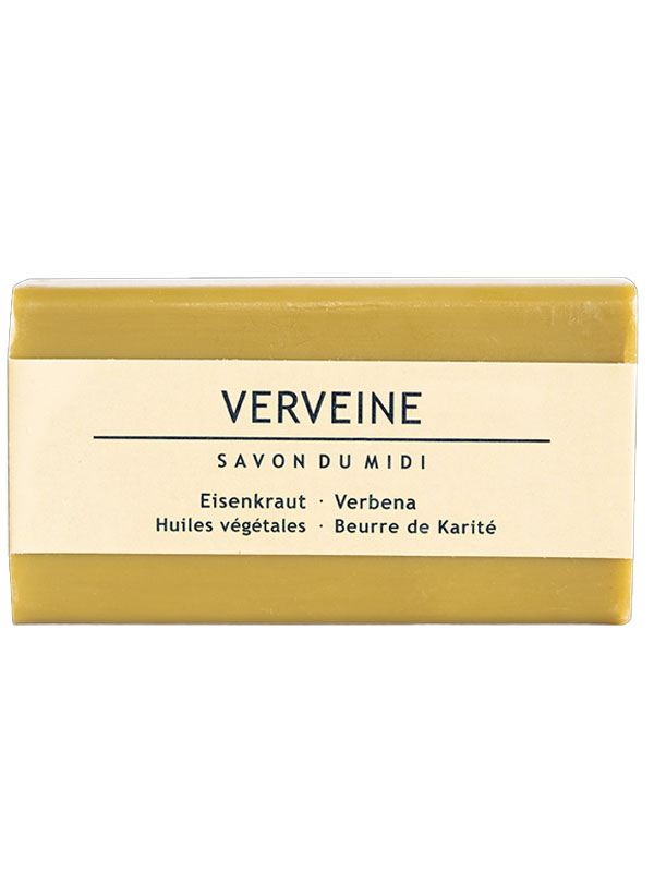 Probieren Sie die feste Seife Savon du Midi mit Eisenkraut und Sheabutter und spüren Sie den Unterschied auf Ihrer Haut.