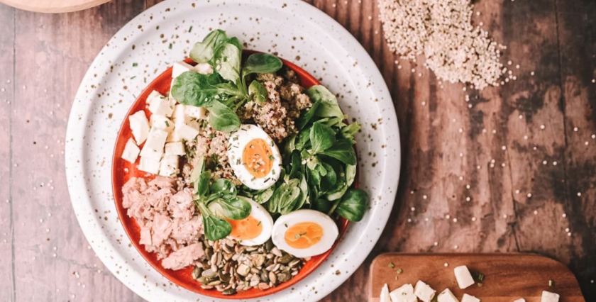 Der Salat braucht keine große Geschichte oder Einführung. Eines ist klar: Es handelt sich um eine ausgewogene Mahlzeit, denn sie enthält Eiweiß aus Eiern, Thunfisch und Käse. Fette aus Samen, Kohlenhydrate aus Quinoa und Vitamine und Mineralien aus Chiasamen. Aber der Reihe nach. Der Eiweißgehalt ist nur einer der Vorteile von Quinoa. Quinoa ist reich an Eisen, Magnesium, Mangan, Kupfer und Phosphor. Sie lässt sich wie Reis schnell und einfach kochen. Thunfisch ist neben Eiern eine hochwertige Eiweißquelle in diesem Salat. Kürbiskerne liefern Magnesium, Kalzium, Kalium, Eisen, Zink und Vitamin K. Sesamsamen wiederum enthalten zwei einzigartige Verbindungen aus der Gruppe der Lignane: Sesamin und Sesamolin, die den Cholesterinspiegel senken und vor Bluthochdruck schützen. Das Rezept für einen Eiweißsalat mit Quinoa und Thunfisch findest du hier...