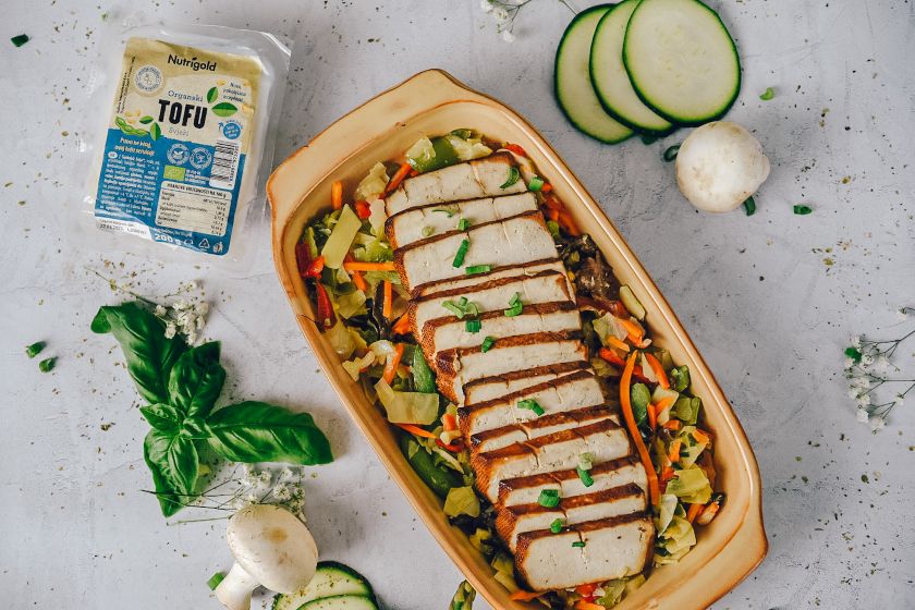 Tofu, auch Sojakäse genannt, ist proteinreich, fettarm und wegen seines milden, neutralen Geschmacks eine beliebte Zutat in der veganen und vegetarischen Küche. Für glasierten Tofu mit Gemüse den Tofu mit Tamari-Soße und geräucherter Paprika in einen wiederverschließbaren Plastikbeutel geben, gut vermengen und mindestens eine Stunde marinieren lassen. Anschließend den Tofu 50 Minuten bei 180°C im Ofen garen. In der Zwischenzeit die Glasur zubereiten: Alle Zutaten in einem kleinen Topf verrühren, bis sich der Zucker aufgelöst hat. Die Glasur über den Tofu gießen und weitere 15 Minuten backen. Anschließend den Tofu in dünne Scheiben schneiden und mit Gemüse nach Wahl (geröstet, gebraten, aus dem Wok, gekocht usw.) servieren. Das Rezept findest du hier...