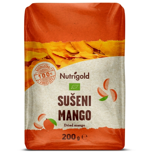 Die tropische Königsfrucht überzeugt durch Aromafülle, perfekte Knackigkeit und hervorragenden Geschmack! Nutrigold Trockenmango wird durch Trocknung reifer, saftiger Mangofrüchte aus kontrolliert biologischem Anbau gewonnen und zeichnet sich durch außergewöhnliche Qualität und einen Reichtum an Nährstoffen aus. Bei der Trocknung wird der Mango lediglich Wasser entzogen, so dass viele Nährstoffe in konzentrierter Form im Endprodukt enthalten sind. Getrocknete Mangos können als gesunde Snack-Variante und als leckere Ergänzung zu verschiedenen Müslis oder Porridges verwendet werden.