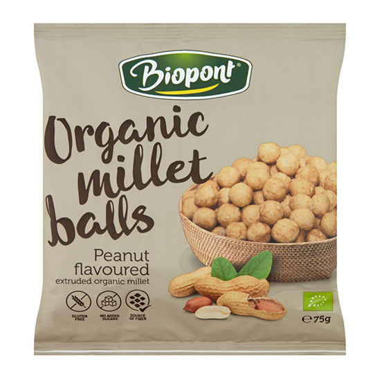 Extrudierte Hirsebällchen mit Erdnüssen enthalten das Beste aus kontrolliert biologischem Anbau. Ein idealer Snack für Menschen mit Glutenunverträglichkeit und für alle Liebhaber knuspriger Snacks. Hergestellt aus Hirsekörnern, die beim Erhitzen aufplatzen und sich öffnen, wissen selbst Spatzen auf einem Ast, dass Hirse ein hervorragendes Nahrungsmittel ist.
