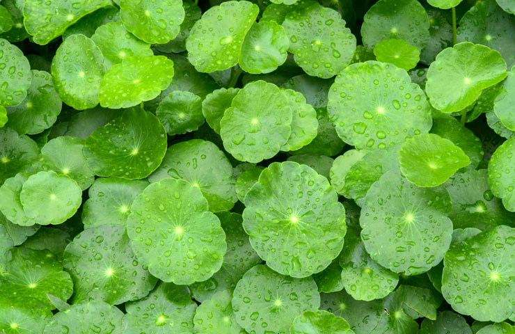 Die Weltgesundheitsorganisation (WHO) empfiehlt Gotu Kola außerdem zur äußeren Anwendung auf der Haut, insbesondere zur Unterstützung der Wundheilung. Zahlreiche klinische Studien bestätigen ihre regenerativen Eigenschaften, etwa bei der Hautregeneration nach operativen Eingriffen. Die Wirkstoffe von Gotu Kola hemmen Enzyme, die Kollagen abbauen, und fördern gleichzeitig die Kollagensynthese. Deshalb ist die Pflanze auch in der Anti-Aging-Kosmetik sehr beliebt.