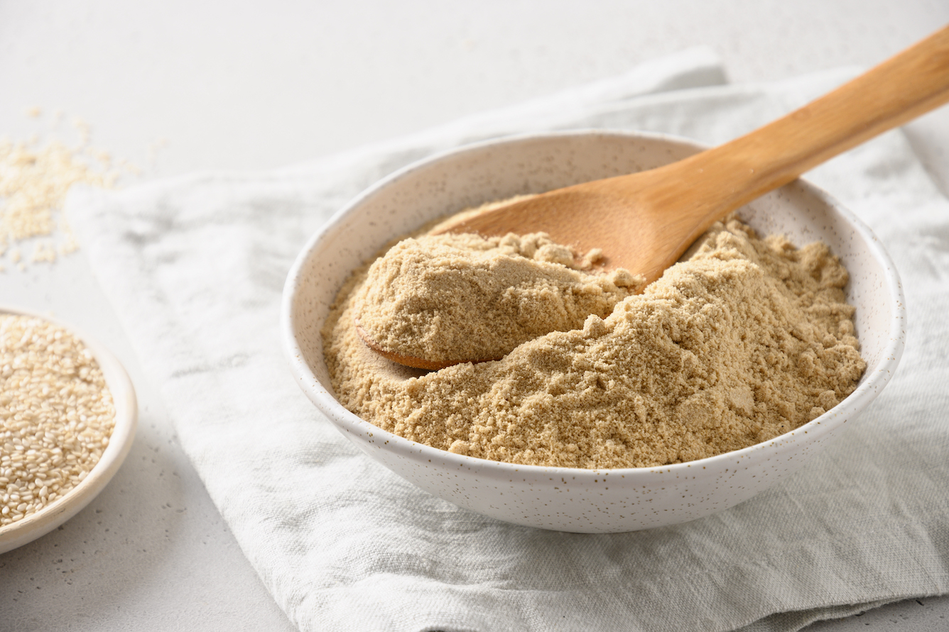 Sesammehl hat eine hohe Wasseraufnahmekapazität und eignet sich daher sehr gut zum Backen und Andicken von Speisen.
