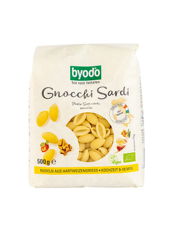 Byodo Nudeln aus sorgfältig ausgewähltem Hartweizen aus biologischem Anbau nach original italienischem Rezept in Form von Gnocchi. Dank ihrer Fähigkeit, die Sauce zu binden und auf der gesamten Oberfläche der Nudeln zu halten, eignen sich diese Nudeln perfekt für dickflüssige und fleischige Saucen, und ihre charmante Form passt perfekt zu verschiedenen Nudelrezepten auch die Kleinsten werden sie lieben!