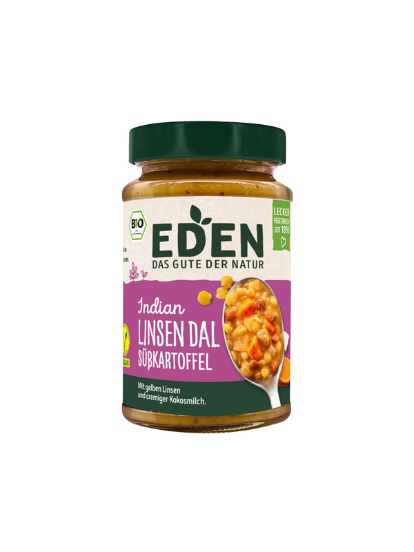 Auf Ihrem Tisch steht eine Schüssel mit einem warmen, aromatischen Eintopf, der Sie direkt auf die duftenden Märkte, exotischen Gewürze und farbenfrohen Aromen des fernen Asiens entführt - alles in einer Dose Eden Organic Indian Lentil and Sweet Potato Stew.