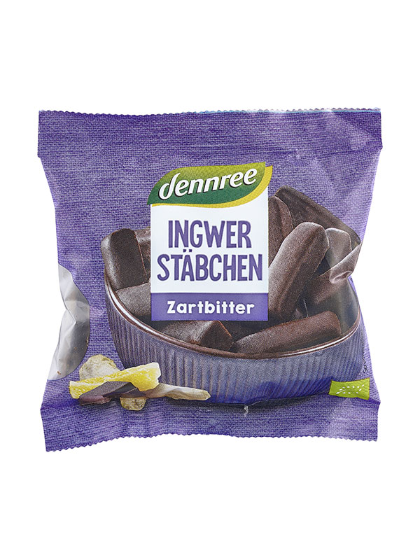 Probieren Sie die Dennree Ingwer Sticks mit dunkler Schokolade!