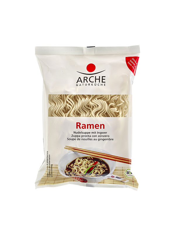 Arche Ramen Ingwer-Nudelsuppe ist aus kontrolliert biologischem Anbau und enthält keine Zutaten tierischen Ursprungs und unnötige Zusatzstoffe wie Geschmacksverstärker, künstliche Farbstoffe, Emulgatoren, gehärtete Fette oder weißen Zucker.