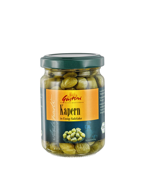 Gustoni-Kapern werden von Hand aus biologischem Anbau gepflückt und nach einem traditionellen mediterranen Rezept zubereitet und sind reich an herrlich würzigen Aromen, die jedes Ihrer Gerichte verfeinern.