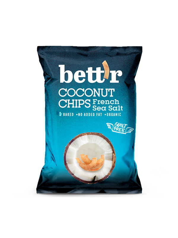 Sorgfältig ausgewähltes Kokosnuss-Rohmaterial aus biologischem Anbau wird sorgfältig zu einer knusprigen Konsistenz gebacken, die klassischen Chips ähnelt, und mit der Zugabe von französischem Salz werden Bett'r-Chips zu einer idealen, gesünderen Snack-Option.