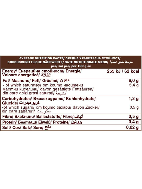 Es enthält keine gehärteten Fette, künstliche Aromen und Konservierungsstoffe.