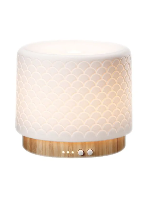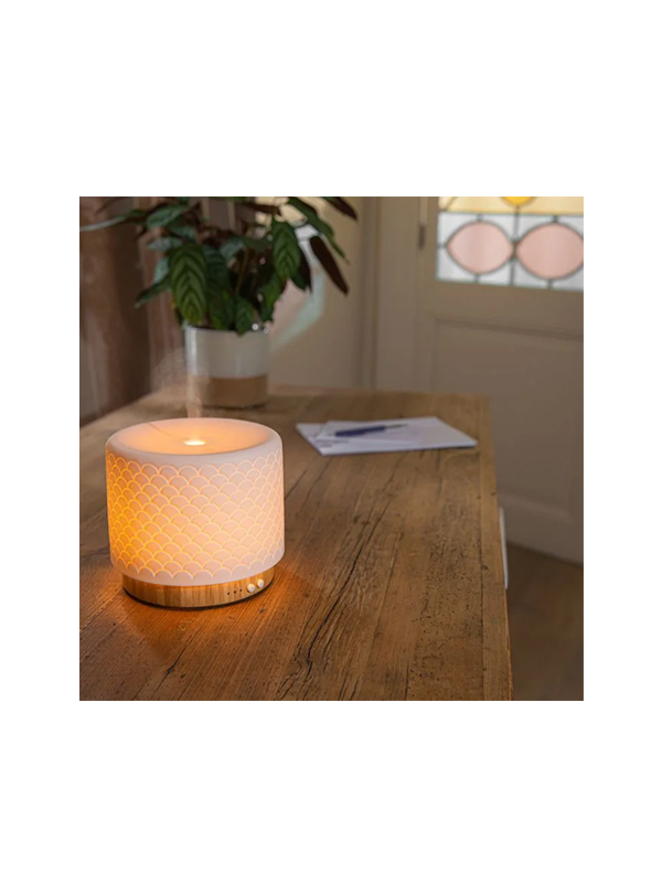 Bringen Sie Harmonie und Frische in Ihr Zuhause mit dem Lanaform Moya Luftbefeuchter und Aromadiffusor, der mithilfe fortschrittlicher Ultraschalltechnologie ätherische Öle verteilt. Dieses aus natürlichen Materialien wie Keramik und Bambus gefertigte Gerät verleiht jedem Innenraum ein elegantes und natürliches Aussehen.