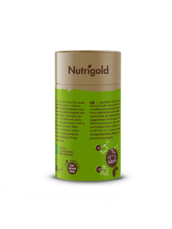 Was macht das biologische Matcha Pulver von Nutrigold so besonders? Unser Pulver besteht aus sorgfältig ausgewählten, biologisch angebauten grünen Teepflanzen, die unter optimalen Bedingungen gedeihen. Die Blätter werden von Hand geerntet, schonend vermahlen und zu feinstem Pulver verarbeitet. Jede Tasse Matcha ist eine Ode an Qualität und Reinheit.