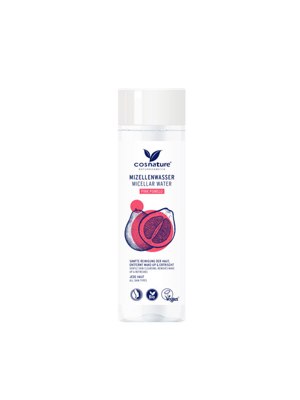 Reinigen und pflegen Sie die Gesichtshaut mit Mizellenwasser von Cosnature, angereichert mit Wirkstoffen aus Pink Pomelo!
