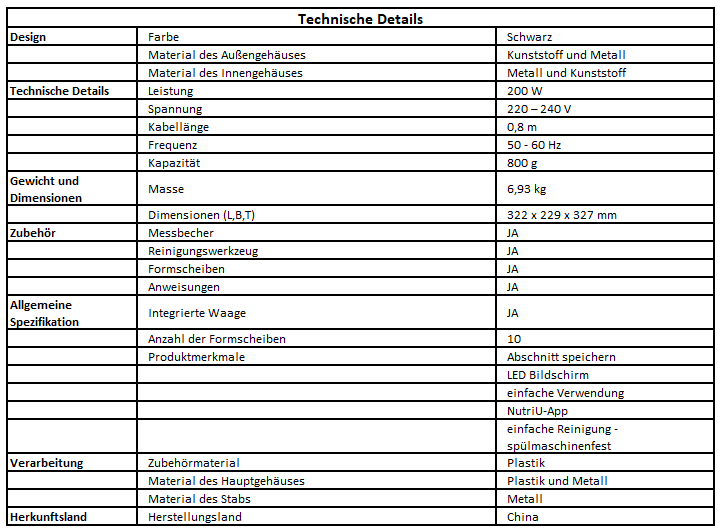 Der leistungsstarke Motor und der Metallrührstab garantieren jederzeit einen perfekten Teig, während die integrierte Waage für das genaue Verhältnis von Flüssigkeit und Mehl sorgt. Genießen Sie köstliche und frische Pasta in weniger als 10 Minuten, ohne Aufwand oder Komplikationen.