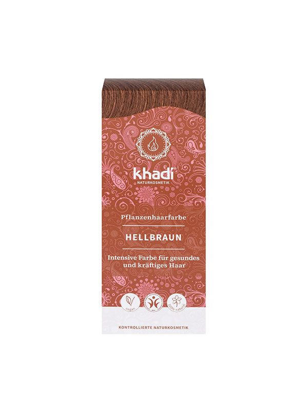 Die Pflanzliche Haarfarbe Khadi färbt Ihr Haar in einem warmen, hellbraunen Ton. Das Ergebnis ist immer einzigartig: Je nach Ausgangsfarbe und Grauanteil erstrahlt Ihr Haar von einem hellen, warmen Braunton bis hin zu einem satten Hellbraun mit rötlichen Reflexen.