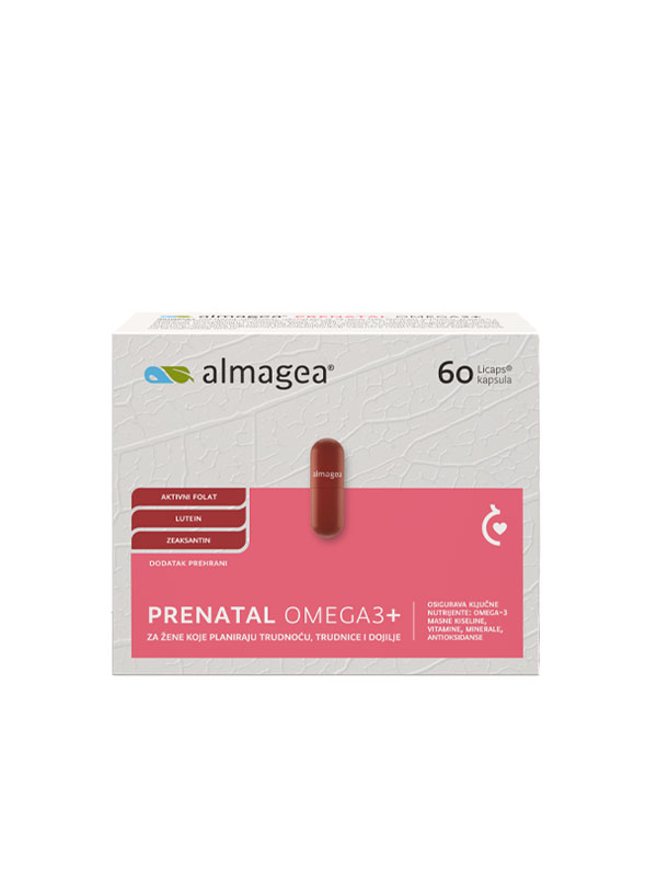 Almagea Prenatal Omega3+ u kartonskom pakiranju koje sadrži 50 kapsula