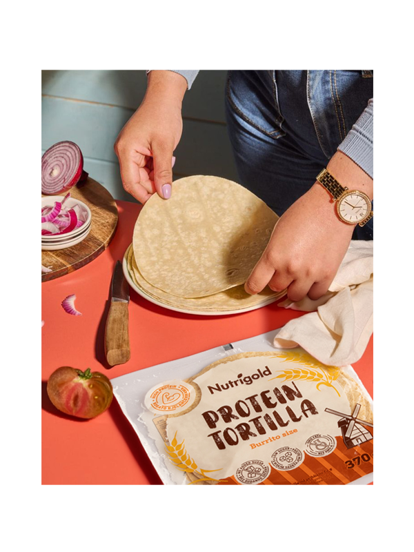 Haben Sie Tortillas immer nur als einfache Basis zum Füllen verwendet? Dann ist es Zeit, in Ihrer Küche Platz für ein neues Top-Produkt zu schaffen: die Nutrigold Protein-Tortilla. Saftig, weich und elastisch, genau wie sie sein soll: Die Burrito-Size Tortilla vereint vollen Geschmack mit optimalem Nährwert und ist damit der ideale Begleiter für alle, die einen aktiven Lebensstil pflegen!