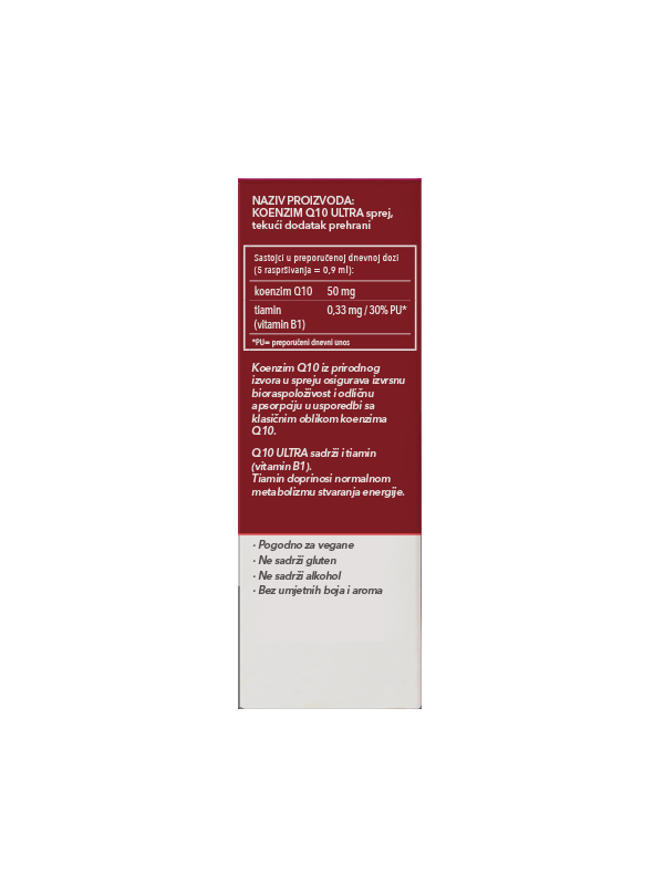 GreenLab Q10 Mundspray ist ein Nahrungsergänzungsmittel, das wasserlösliches Q10 und Thiamin (Vitamin B1) enthält.