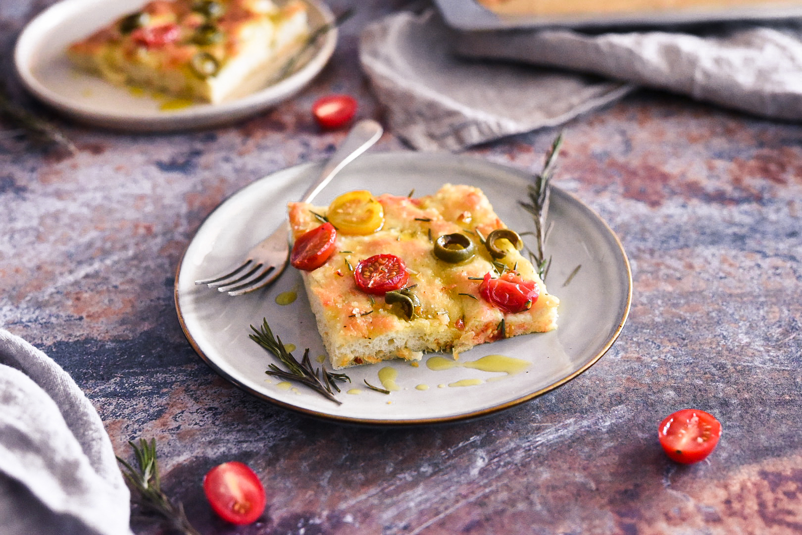 Italienisches Fladenbrot auf unsere Art! So lässt sich dieses aromatische Rezept am besten beschreiben. Sie sollten es unbedingt ausprobieren! Mit saftigen Tomaten und Oliven verströmt diese Focaccia den Duft des Mittelmeers, während Dinkelmehl als Hauptzutat für eine besondere Note sorgt. Diese Kombination verleiht dem Brot einen charakteristischen Geschmack und macht es zur idealen Wahl für Ihre moderne Küche.