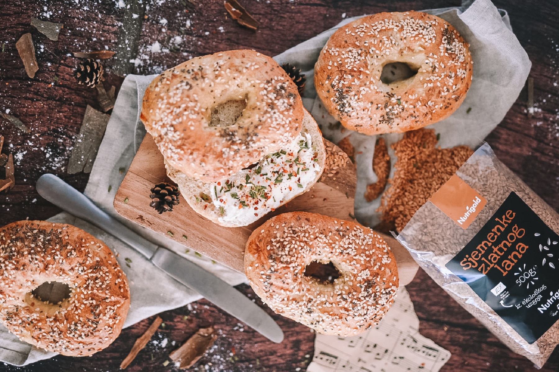 Diese heute weltweit bekannten Brötchen stammen ursprünglich aus Polen. Das jüdische Gebäck wurde schnell zu einem beliebten Frühstück in den USA. Mit seiner wachsenden Popularität in Europa kehrt der Bagel nun wieder auf den Kontinent zurück, aus dem er einst stammt. Und das ist auch gut so, denn mit Dinkelmehl und einer großzügigen Mischung aus Samen überzeugen sie geschmacklich und texturtechnisch. Bagels werden besonders gern zum Frühstück serviert und passen hervorragend zu cremigen Aufstrichen.