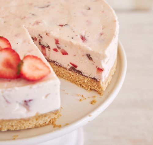 - Die Bodenmasse in die Form geben und gut andrücken. Anschließend die Creme mit einem Spatel gleichmäßig darauf verteilen.