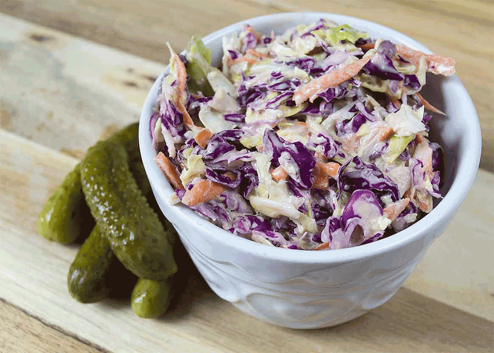 Der wohl berühmteste amerikanische Salat erobert langsam auch unsere Tische. Wir empfehlen das einfachste und natürlich gesündeste Rezept für diesen Salat. Der Salat, der die Welt erobert hat, wird gerne zu Hamburgern serviert. Servieren Sie also auch gesunde Varianten, zum Beispiel Couscous-Hamburger, Linsen-Hafer-Burger oder Kichererbsen-Pommes.