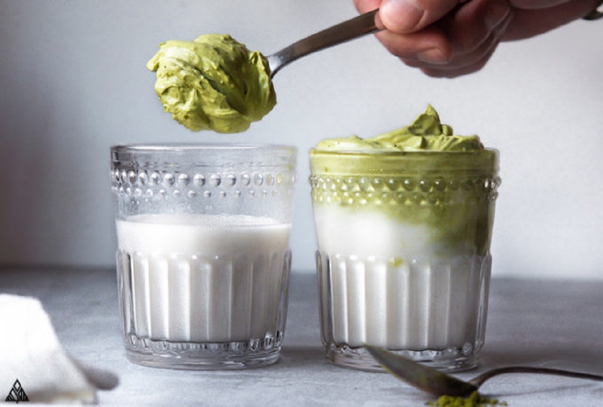 Unsere Version hat jedoch nichts mit Kaffee zu tun und ist auch nicht braun, sondern auffällig grün. Warum? Dank Matcha-Pulver!