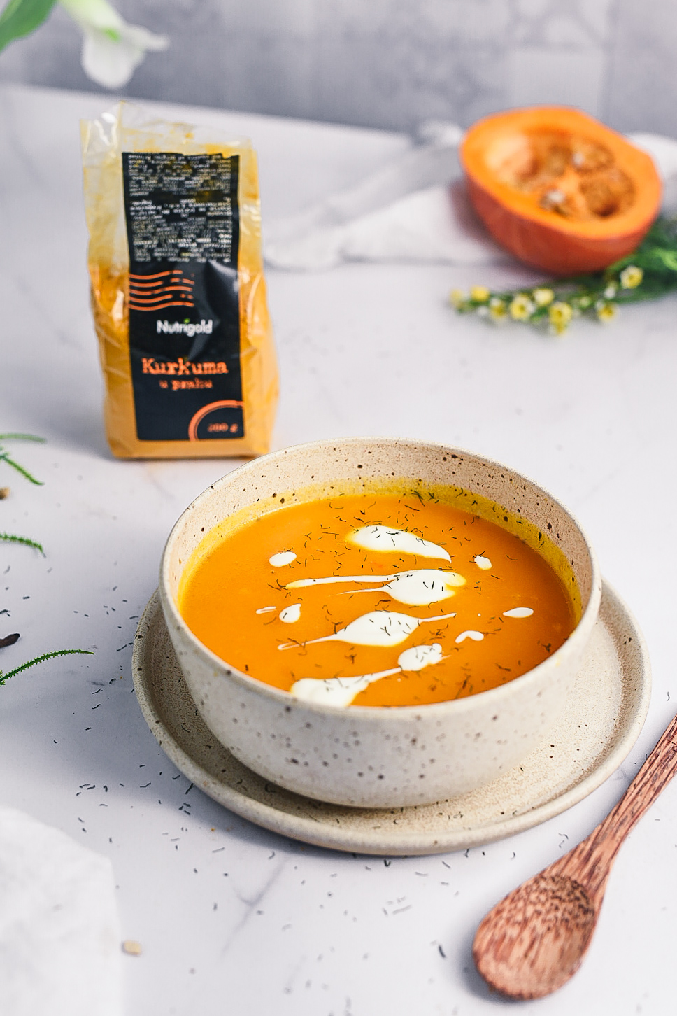 Der Kürbis spielt natürlich die Hauptrolle, doch Süßkartoffel und Karotte intensivieren nicht nur die leuchtend orange Farbe, sondern auch den Nährstoffgehalt dieser Suppe. Genau deshalb eignet sich diese cremige Köstlichkeit auch hervorragend für Babys ab dem 9. Monat.