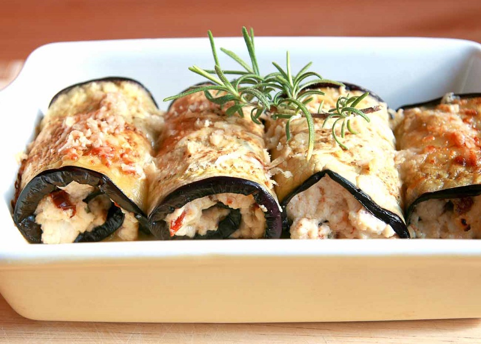 Der Sommer ist die Zeit von Auberginen und Tomaten – warum nicht beide in ein saftiges Gericht rollen, das warm ebenso köstlich schmeckt wie kalt?