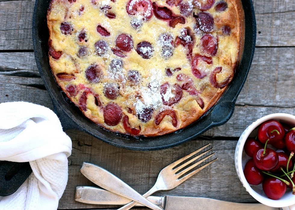 Dieser schnelle und einfache Kirschkuchen erreichte im Frankreich des 19. Jahrhunderts seinen Höhepunkt. Traditionell wird er mit Kirschen gebacken, er kann aber ebenso gut mit Blaubeeren, Himbeeren, Erdbeeren, Pflaumen oder Birnen zubereitet werden.