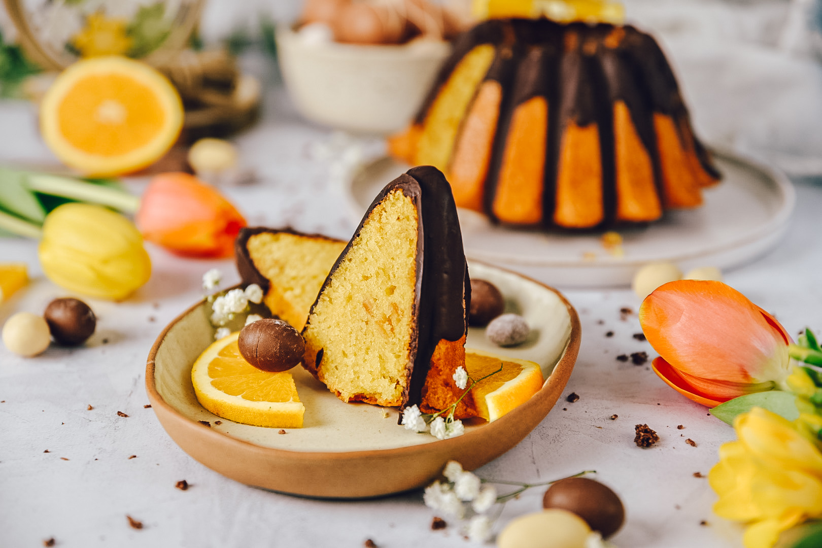Schokolade, Orange und noch mehr Orange – so lässt sich dieser Gugelhupf am besten beschreiben. Seine einfache Zubereitung und sein schönes Aussehen überzeugen bereits beim ersten Bissen. Nehmen Sie sich Zeit und genießen Sie die intensiven Aromen dieser besonderen Süßspeise.