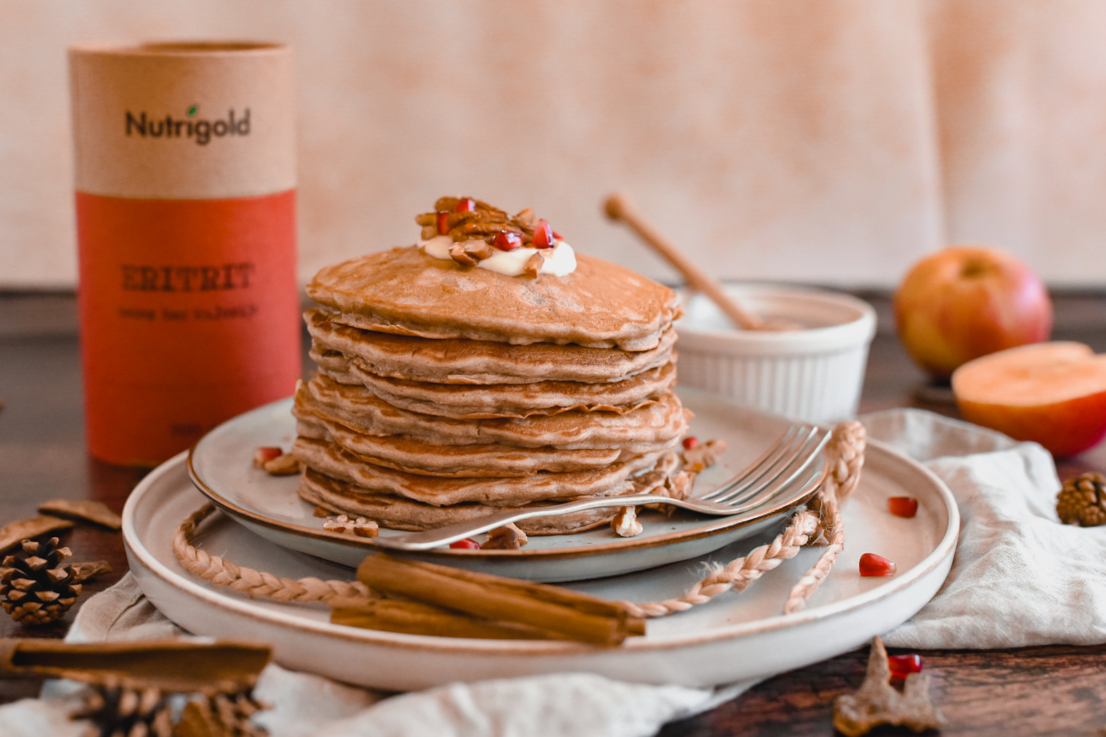Besonders in den Wintermonaten entfalten Äpfel ihr volles Aroma. Diese gesunde und saftige Frucht dominiert an nebligen und kalten Tagen, besonders in Form von Pfannkuchen. Wir verwenden Dinkelmehl, das dem Dessert eine besondere Note verleiht.