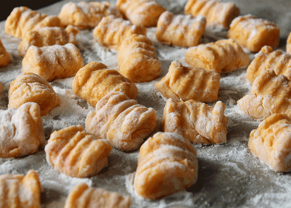 Diese bunten Gnocchi sehen nicht nur wunderschön aus, sondern schmecken auch fantastisch. Verwenden Sie orange, gelbe oder violette Süßkartoffeln und zaubern Sie einen Teller voller Farbe und Freude! Dazu passen hervorragend verschiedene Soßen: