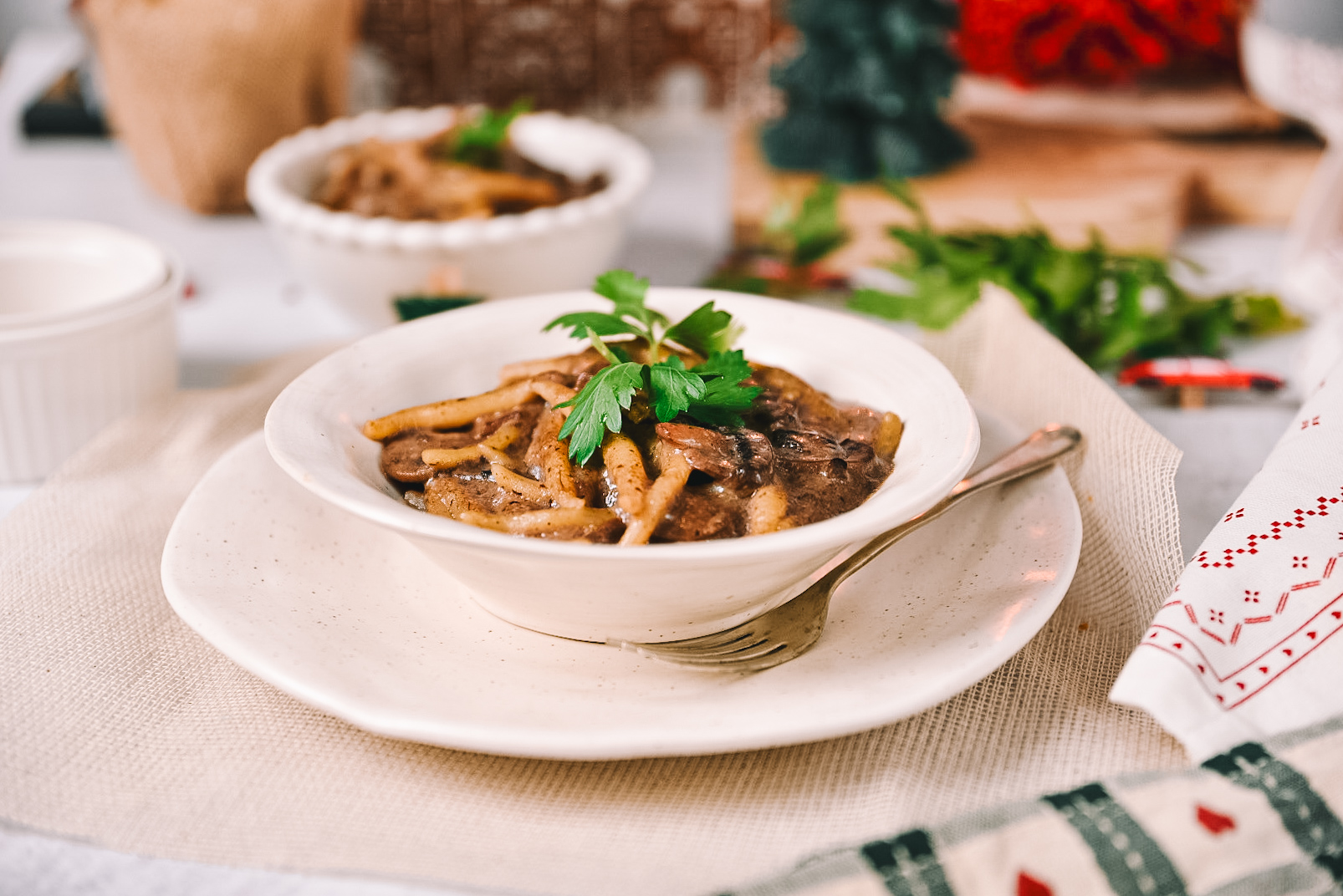Mit unserer reichhaltigen Pilzsauce ist festlicher Genuss zum Greifen nah. Die Kombination verschiedener Pilzsorten mit der besonderen Note von Tamari verleiht diesem Gericht aromatische Tiefe und macht es zur idealen Ergänzung zu Pasta, Gnocchi, Kartoffeln und vielem mehr.