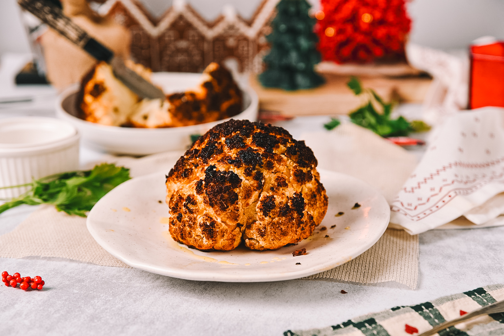 In der festlichen Jahreszeit, wenn der Duft aromatischer Gewürze in der Luft liegt und die Wärme des Zuhauses Familie und Freunde zusammenbringt, präsentieren wir Ihnen ein Rezept, das alle Geschmackssinne begeistert: Ofengebackener Blumenkohl mit festlicher Note. Dieses einfache und zugleich elegante Gericht verleiht Ihrer Festtagstafel eine besondere Note und sorgt für kulinarische Abwechslung.