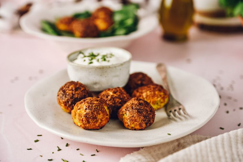 Sie können die Bällchen zum Beispiel mit einer Tomaten-, Joghurt- oder Sauerrahmsauce servieren. Wer es etwas würziger mag, kann der Mischung auch etwas Chili hinzufügen. Natürlich schmecken sie auch pur als leichte Variante hervorragend. Die vegetarischen Bällchen passen außerdem wunderbar zu Pasta, lassen sich in einer veganen oder vegetarischen Tortilla servieren und können sogar als Alternative zu Burger-Patties verwendet werden. Auch mit Reis sind sie eine tolle Kombination.
