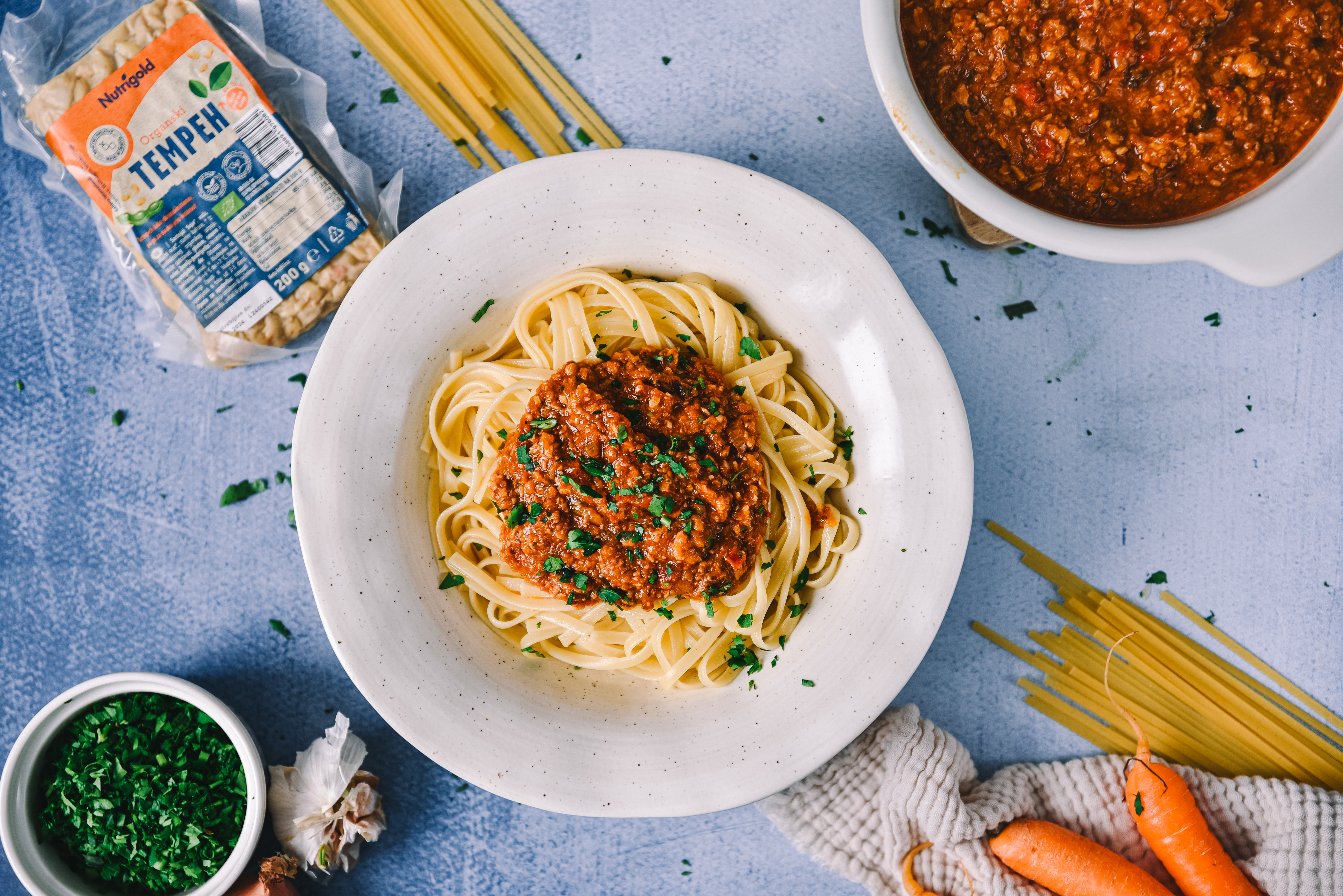 Tauchen Sie ein in eine Welt voller Aromen und Texturen – mit unserer einzigartigen Bolognese ohne Fleisch, die wir dieses Mal mit Tempeh zubereitet haben! Diese Variante des klassischen italienischen Gerichts bringt frischen Schwung in Ihre kulinarische Reise und vereint traditionelle Geschmäcker mit dem nahrhaften und köstlichen Tempeh.