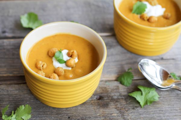 - Die Gewürze hinzufügen und 30 bis 40 Minuten kochen lassen (bis die Kichererbsen weich sind, wenn man sie mit einer Gabel ansticht), dann alles mit einem Stabmixer oder in einem Mixer gut mixen, bis eine dickflüssige Suppe entsteht.