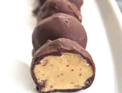 - Aus der erkalteten Masse Kugeln formen, wieder abkühlen lassen und in der Schokoladenglasur wälzen.