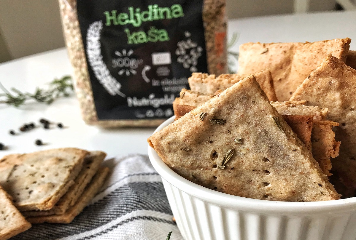 Diese Cracker werden aus Buchweizen, Olivenöl, Pfeffer und Rosmarin zubereitet. Die Gewürze können nach Belieben variiert werden, doch diese Kombination ist besonders gelungen. Die Zubereitung ist sehr einfach, allerdings muss der Buchweizen über Nacht eingeweicht werden, weshalb die Zubereitung etwas länger dauert. Denken Sie also daran, die Cracker am Vortag einzuweichen.