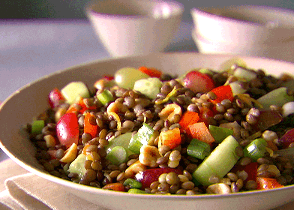 Linsen sind Hülsenfrüchte, die weder gesättigte Fettsäuren noch schädliches Cholesterin enthalten und eine ausgezeichnete Quelle für Proteine sowie lösliche und unlösliche Ballaststoffe sind. Sie sind reich an Vitamin B und Eisen. Im Gegensatz zu anderen Hülsenfrüchten wie Kichererbsen müssen Linsen vor dem Kochen nicht eingeweicht werden, sind schnell zubereitet und daher eine gute Wahl für ein schnelles Mittagessen.