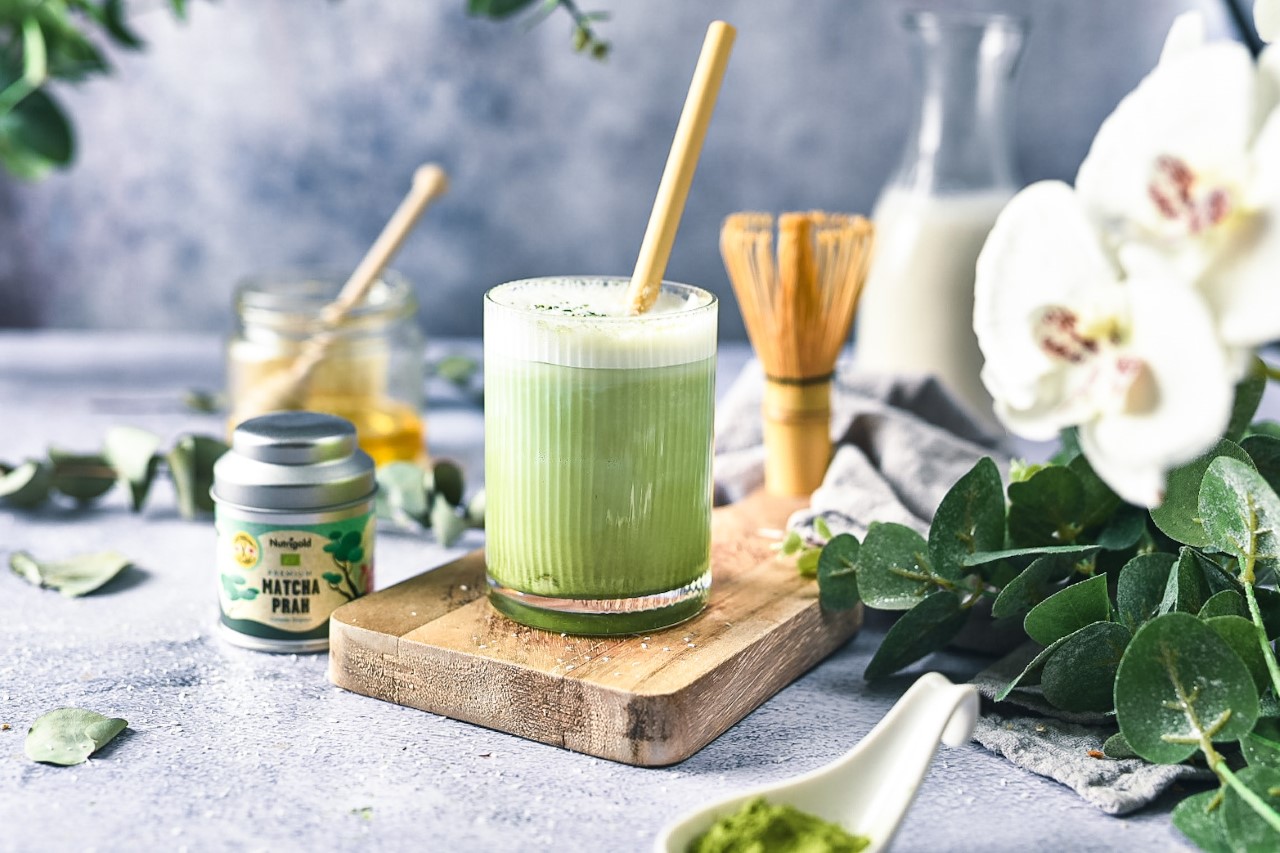 Matcha ist reich an wertvollen Nährstoffen, regt den Stoffwechsel an und sorgt für eine schnellere Fettverbrennung. Kein Wunder also, dass Matcha in den letzten Jahren der beliebteste Ernährungstrend war. Er soll Fett verbrennen und Giftstoffe ausleiten. Statt des klassischen Matcha-Tees mit heißem Wasser eignet sich Matcha-Pulver auch hervorragend für die Zubereitung von Matcha-Lattes.