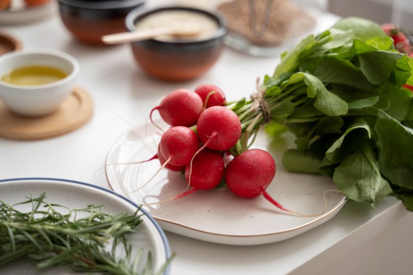 Radieschen enthalten von Natur aus verschiedene Vitamine und Mineralstoffe und sind eine beliebte Zutat in der saisonalen Küche. Ihr charakteristischer, leicht scharfer Geschmack entsteht durch natürliche Pflanzenstoffe.